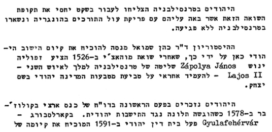 היהודים בטרנסילבניה הערה – נא לא להתבלבל: בשורה השנייה מוזכרת "השואה הזאת" – הכוונה לשואה קודמת שהתרחשה בשנת 1686, שהוזכרה בפרק הקודם, ולא לשואה הידועה שבה יהודי טרנסילבניה הובלו לאושוויץ.
